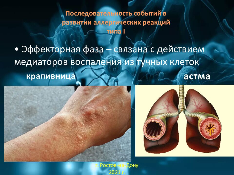 • Эффекторная фаза – связана с действием медиаторов воспаления из тучных клеток крапивница астма г. Ростов-на-Дону 2021 г.