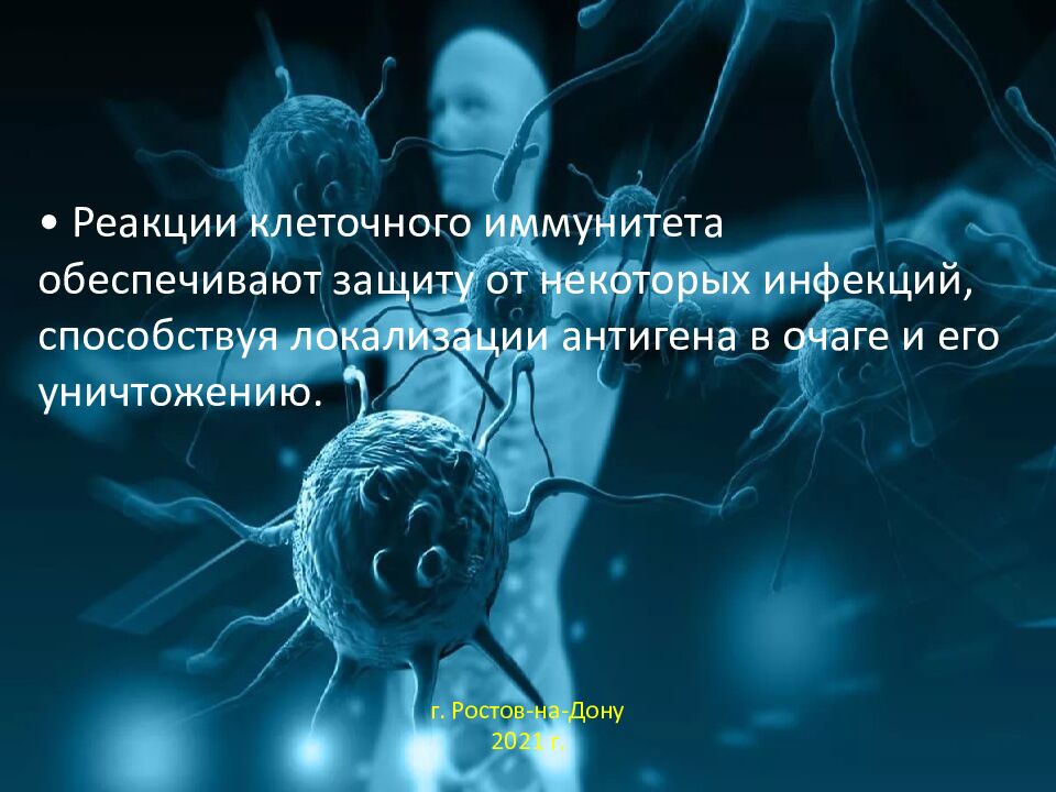 • Реакции клеточного иммунитета обеспечивают защиту от некоторых инфекций, способствуя локализации антигена в очаге и его уничтожению. г. Ростов-на-Дону 2021 г.