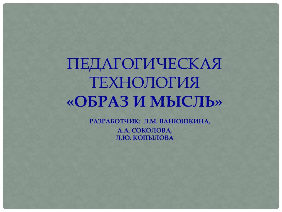 Первый слайд презентации: Педагогическая технология «Образ и Мысль» Разработчик: Л.М. Ванюшкина, А.А. Соколова, Л.Ю. Копылова