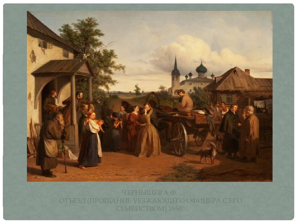 Слайд 8: Чернышев А.Ф. Отъезд (Прощание уезжающего офицера с его семейством) 1850