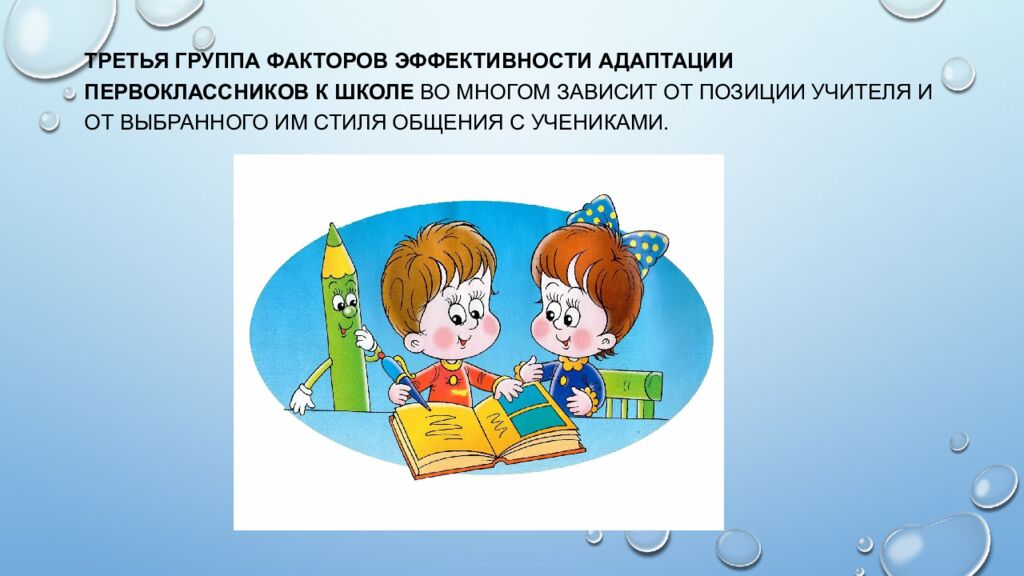 Третья группа факторов эффективности адаптации первоклассников к школе во многом зависит от позиции учителя и от выбранного им стиля общения с учениками.