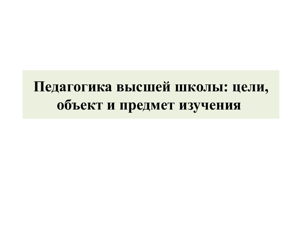 Первый слайд презентации: Педагогика высшей школы: цели, объект и предмет изучения