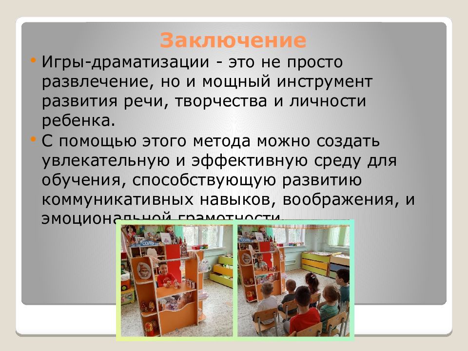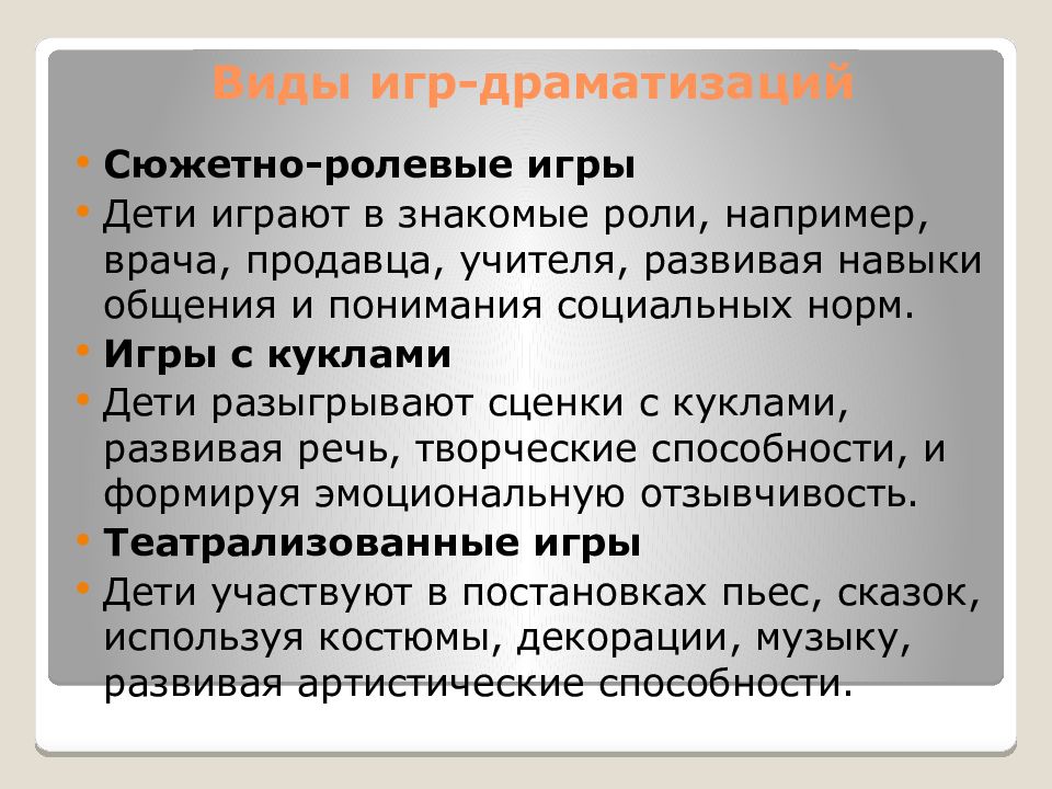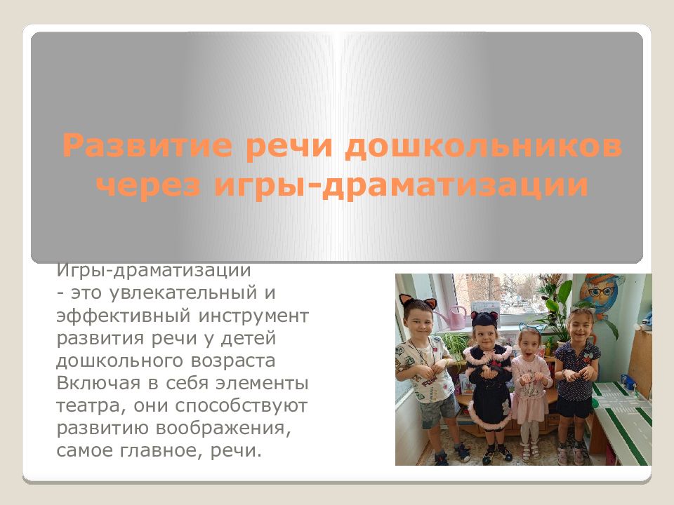 Игры-драматизации - это увлекательный и эффективный инструмент развития речи у детей дошкольного возраста Включая в себя элементы театра, они способствуют развитию воображения, самое главное, речи.
