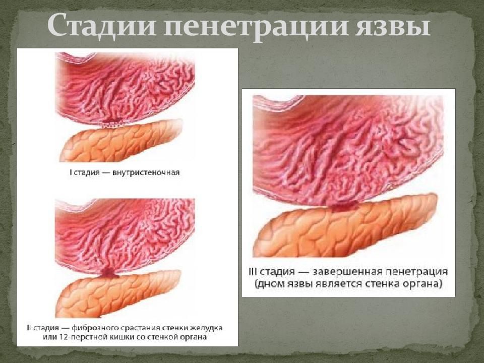 — одно из наиболее часто встречающихся осложнений язвенной болезни. Возникает в результате прогрессирующей деструкции стенки желудка или двенадцатиперстной кишки и сопровождается образованием спаечного процесса, который фиксирует дно язвы к прилегающему органу и этим препятствует прорыву язвы в свободную брюшную полость. Язва постепенно углубляется, достигает наружной оболочки желудка и проникает в ткань, которая прилегает к стенке желудка или двенадцатиперстной кишки. Пенетрация язвы