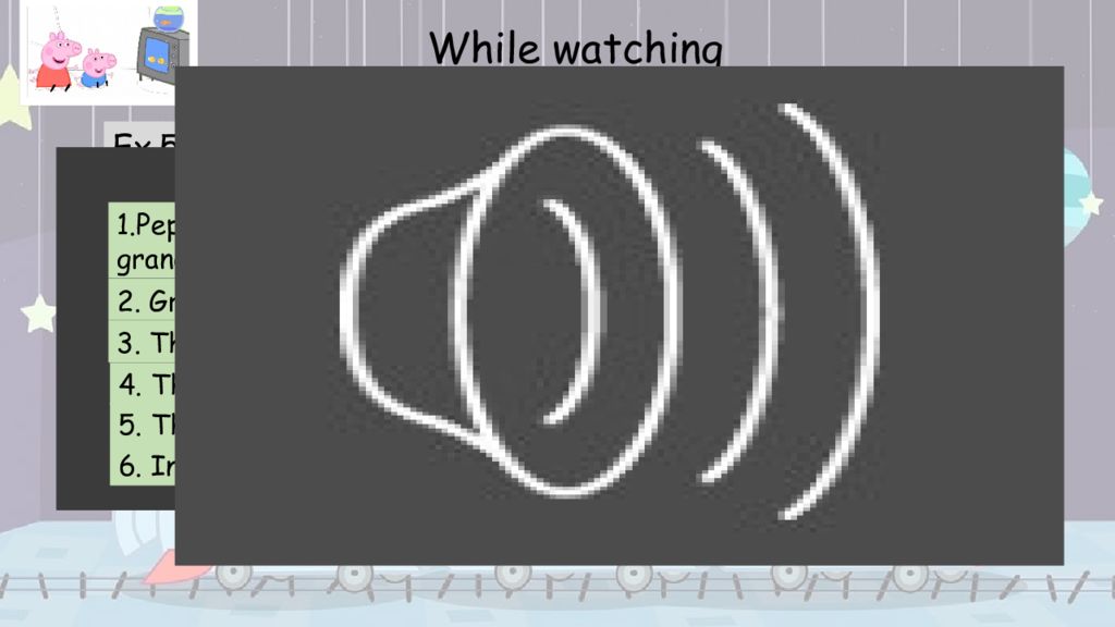 Ex.5. Correct the sentences. Watch the video again and check. 1. Peppa and George are spending the day with their friends. 2. Grandpa Pig is wearing a spacesuit. 3. The rocket is green. 4. The rocket is ready for blast-off to the Earth. 5. They will plant moon rocks and collect a flag. 6. In the end, their trip is pretend. While watching 1.Peppa and George are spending the day with their grandparents. 2. Grandpa Pig is wearing a spacesuit. 3. The rocket is red, yellow, blue & white. 4. The rocket is ready for blast-off to the Moon. 5. They will plant a flag and collect moon rocks. 6. In the end, their trip is real.