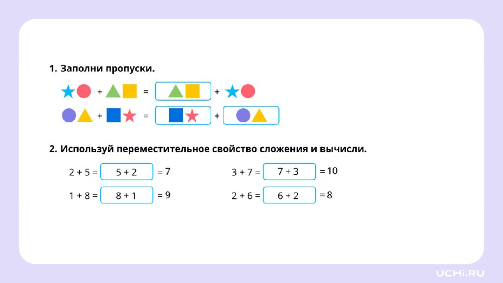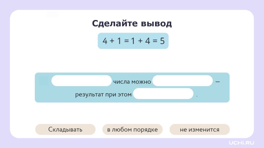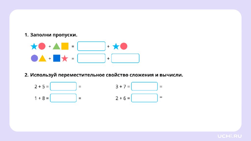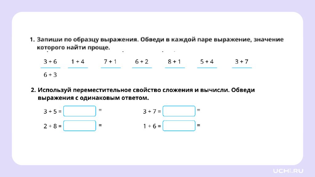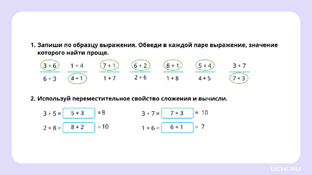 Переместительное свойство сложения и его применение для вычислений 1 класс