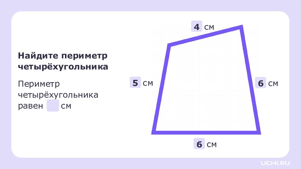 см см см см 5 4 6 6 Найдите периметр четырёхугольника Периметр четырёхугольника равен см