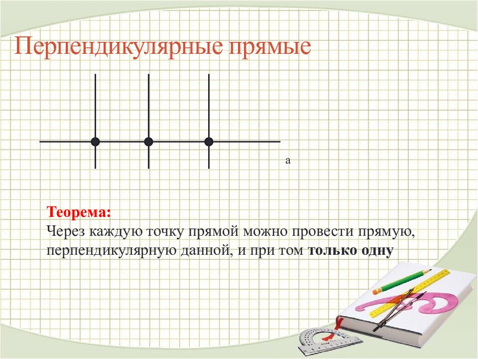 а Теорема: Через каждую точку прямой можно провести прямую, перпендикулярную данной, и при том только одну