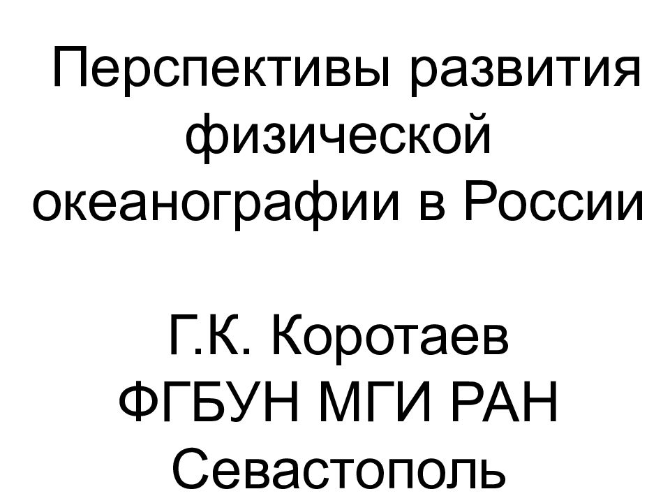 Первый слайд презентации: Перспективы развития физической океанографии в России Г.К. Коротаев ФГБУН МГИ РАН Севастополь