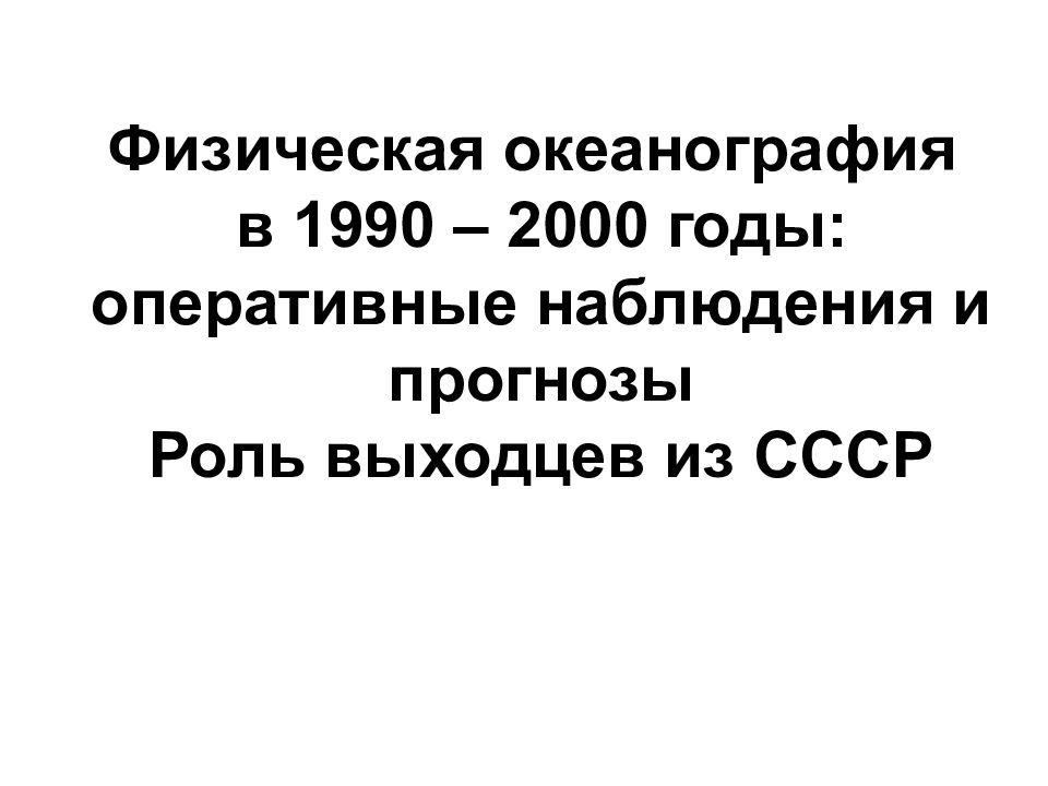 Слайд 11: Физическая океанография в 1990 – 2000 годы: оперативные наблюдения и прогнозы Роль выходцев из СССР