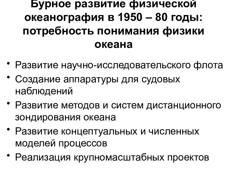 Слайд 2: Бурное развитие физической океанография в 1950 – 80 годы: потребность понимания физики океана