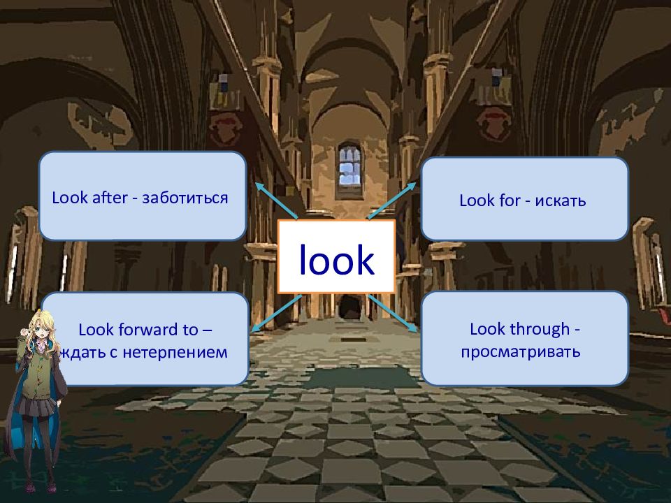 look Look after - заботиться Look for - искать Look forward to – ждать с нетерпением Look through - просматривать