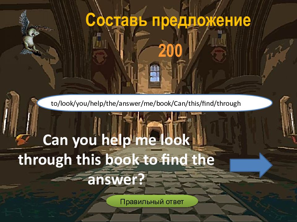 Can you help me look through this book to find the answer ? to/look/you/help/the/answer/me/book/Can/this/find/through Составь предложение 2 00 Правильный ответ