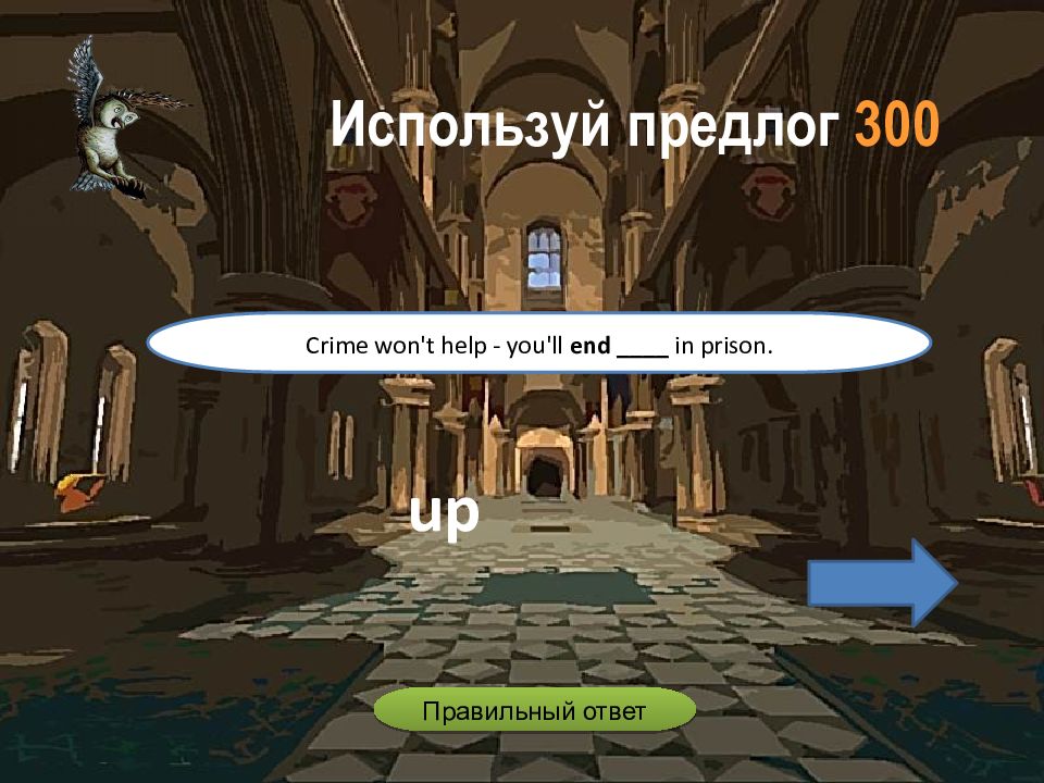 up Crime won't help - you'll end ____ in prison. Используй предлог 3 00 Правильный ответ