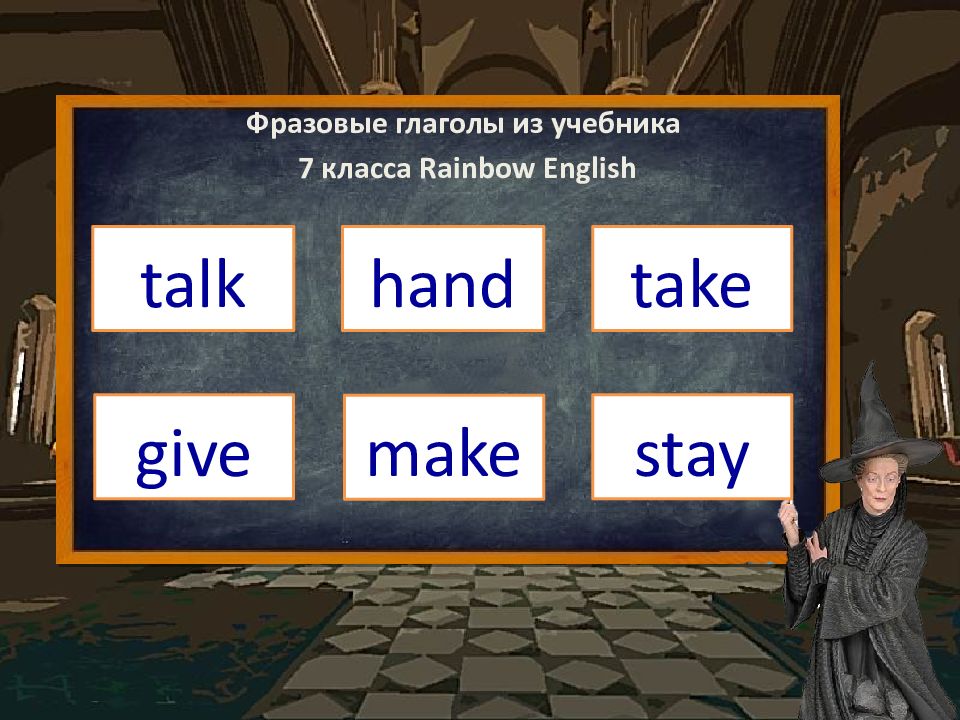 Фразовые глаголы из учебника 7 класса Rainbow English talk hand give make take stay
