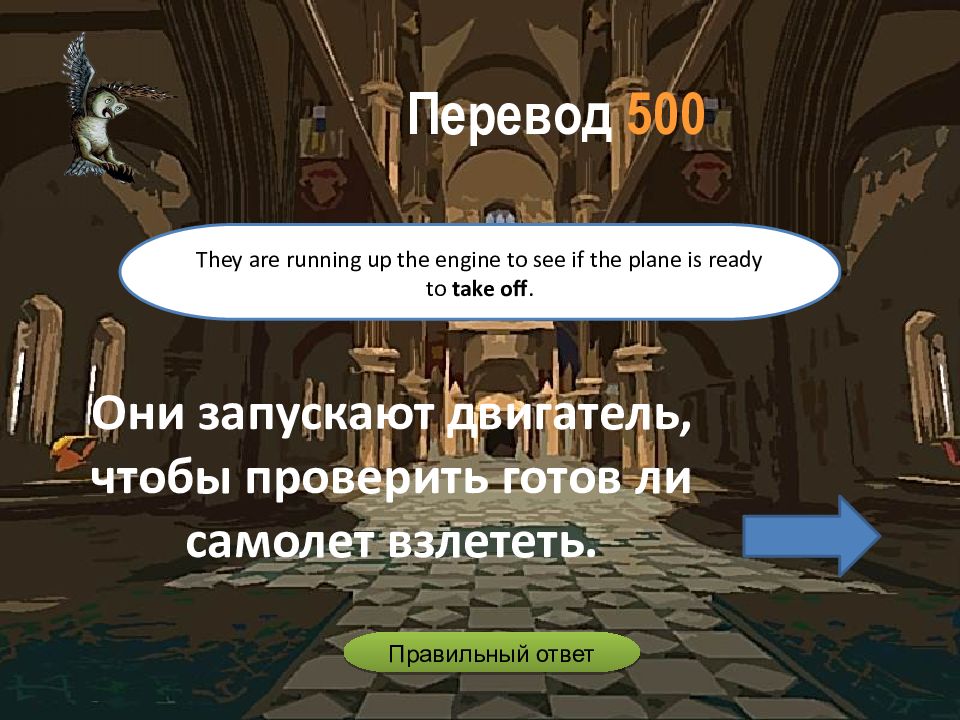 Они запускают двигатель, чтобы проверить готов ли самолет взлететь. They are running up the engine to see if the plane is ready to take off. Перевод 500 Правильный ответ