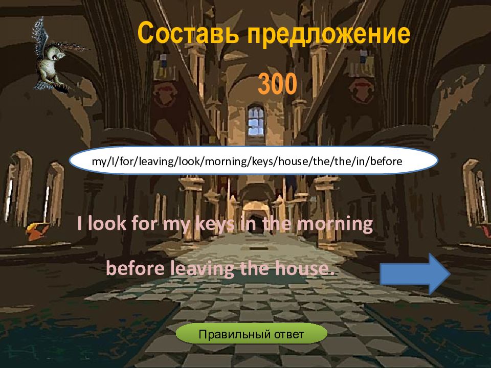 I look for my keys in the morning before leaving the house. my/I/for/leaving/look/morning/keys/house/the/the/in/before Составь предложение 3 00 Правильный ответ