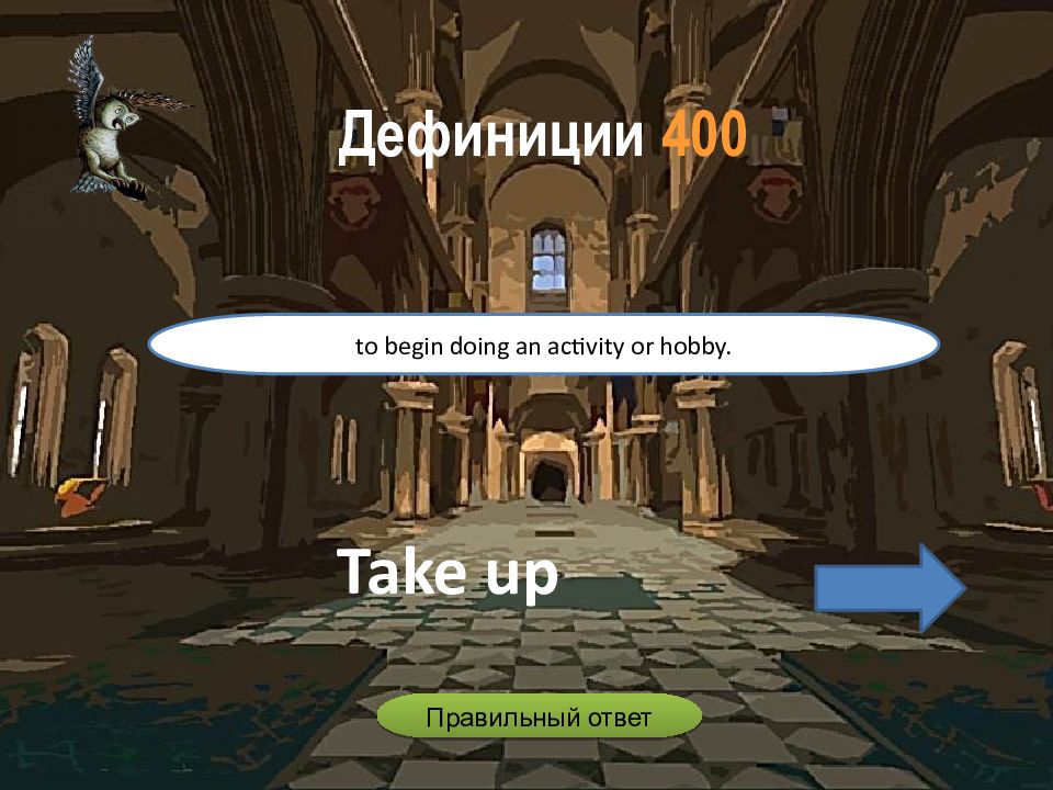 Take up to begin doing an activity or hobby. Дефиниции 4 00 Правильный ответ