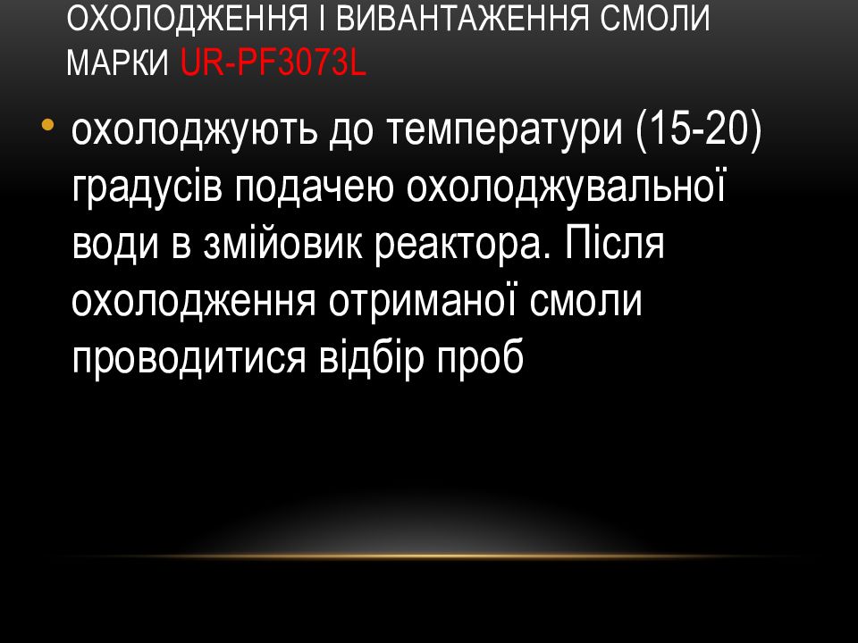 Слайд 9: охолодження і вивантаження смоли марки UR-PF3073L