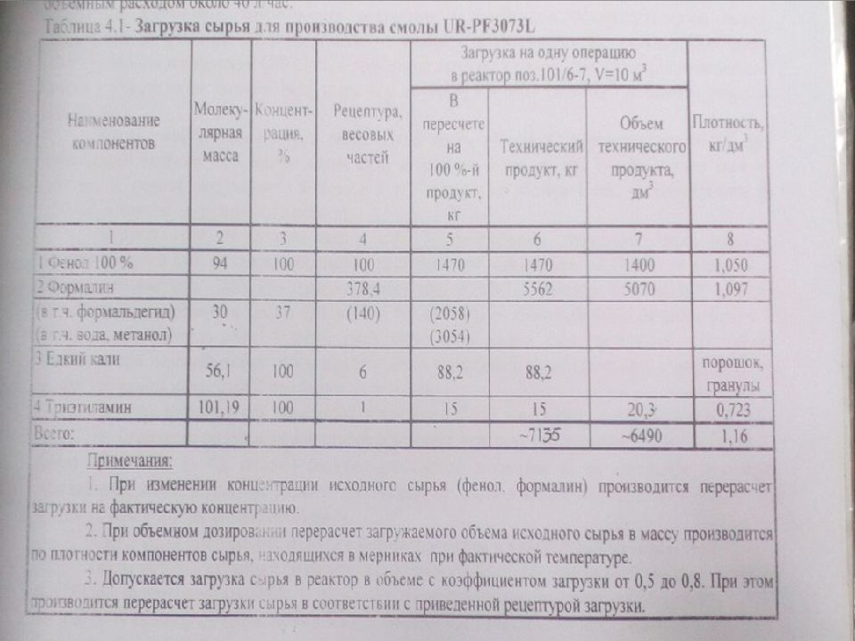UR-PF3073L О пис технологічного процесу отримання смол бекелітових рідких марок