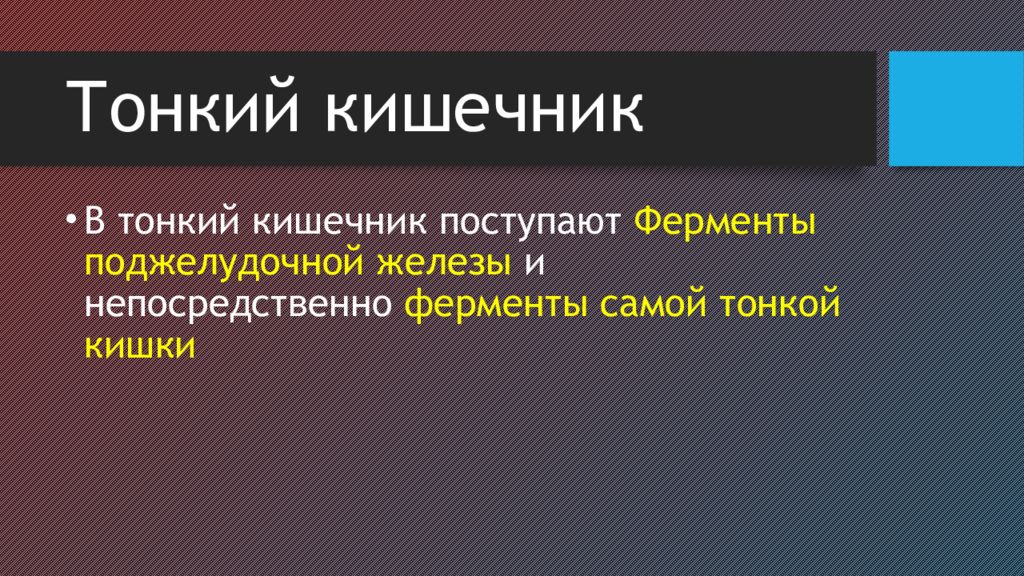 В тонкий кишечник поступают Ферменты поджелудочной железы и непосредственно ферменты самой тонкой кишки