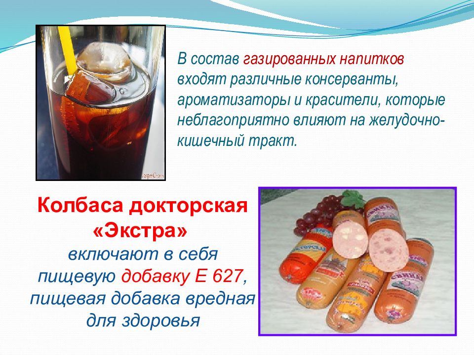 Слайд 14: В состав газированных напитков входят различные консерванты, ароматизаторы и красители, которые неблагоприятно влияют на желудочно-кишечный тракт