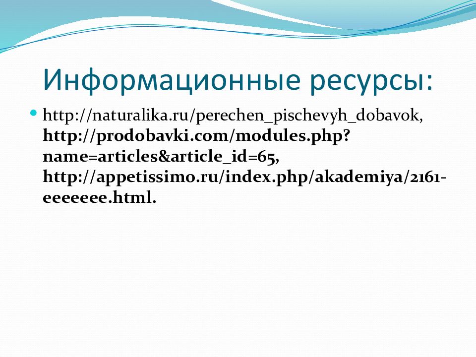 http://naturalika.ru/perechen_pischevyh_dobavok, http://prodobavki.com/modules.php?name=articles&article_id=65, http://appetissimo.ru/index.php/akademiya/2161-eeeeeee.html.
