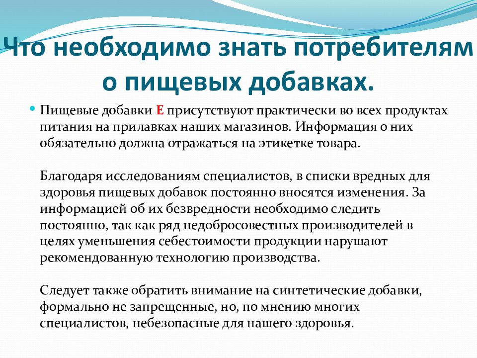 Слайд 16: Что необходимо знать потребителям о пищевых добавках