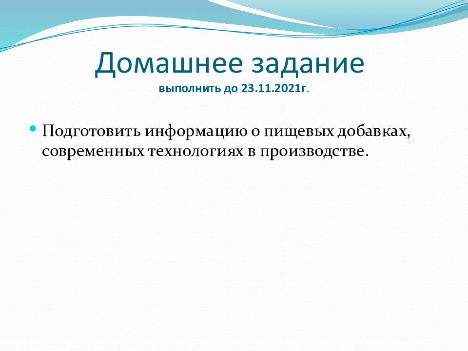 Подготовить информацию о пищевых добавках, современных технологиях в производстве.