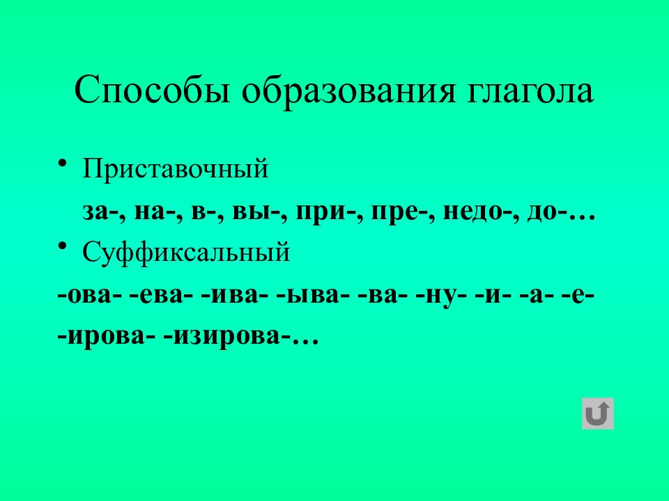 Слайд 12: Способы образования глагола