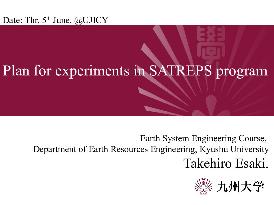 Plan for experiments in SATREPS program Earth System Engineering Course, Department of Earth Resources Engineering, Kyushu University Takehiro Esaki. Date: Thr. 5 th June. @UJICY