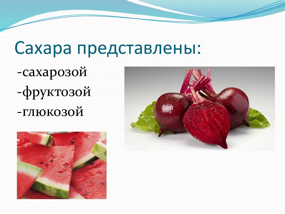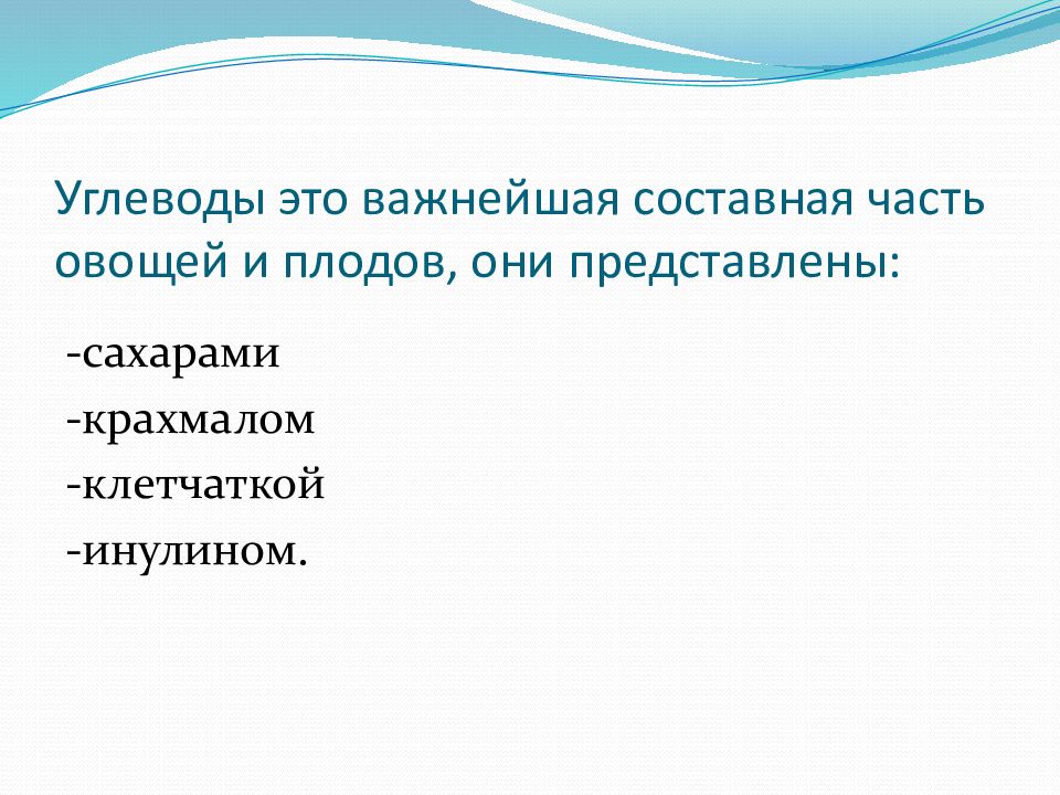 Слайд 5: Углеводы это важнейшая составная часть овощей и плодов, они представлены: