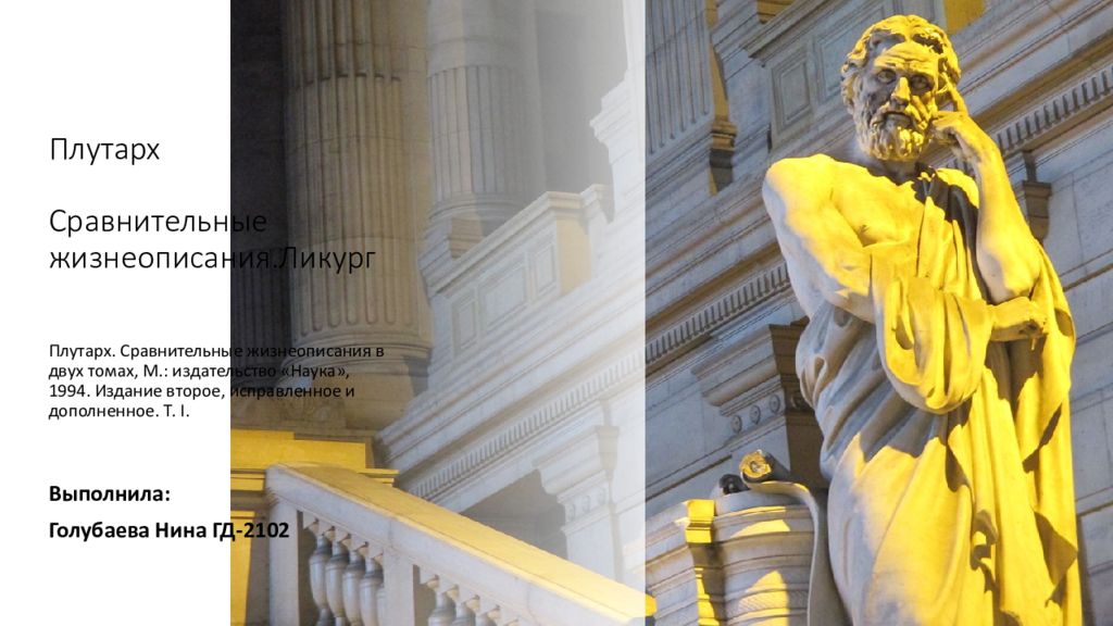 Первый слайд презентации: Плутарх Сравнительные жизнеописания. Ликург