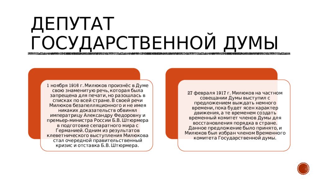 Политический деятель, историк, публицист. Либерал, один из организаторов кадетской партии Член Государственной думы третьего и четвертого созывов Член Учредительного собрания Министр иностранных дел Временного правительства в 1917 году