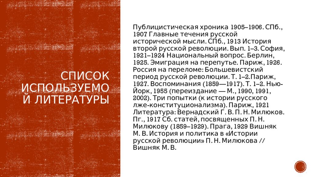 Последний слайд презентации: П.Н. Милюков: Список используемой литературы