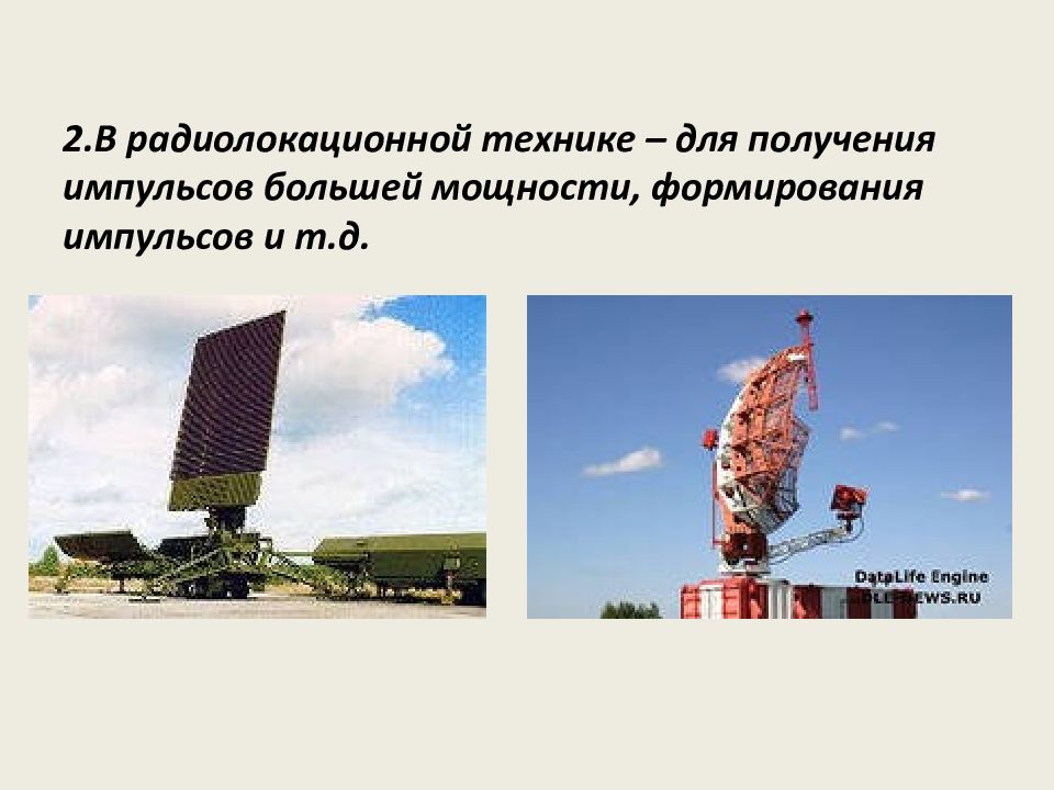 2.В радиолокационной технике – для получения импульсов большей мощности, формирования импульсов и т.д.