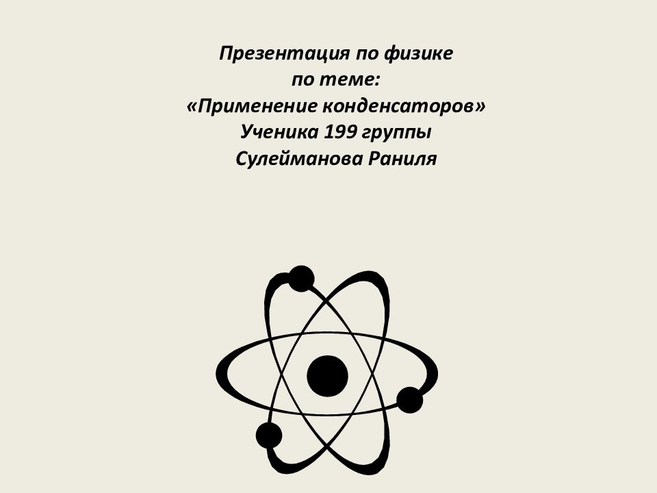 Презентация по физике по теме: «Применение конденсаторов» Ученика 199 группы Сулейманова Раниля