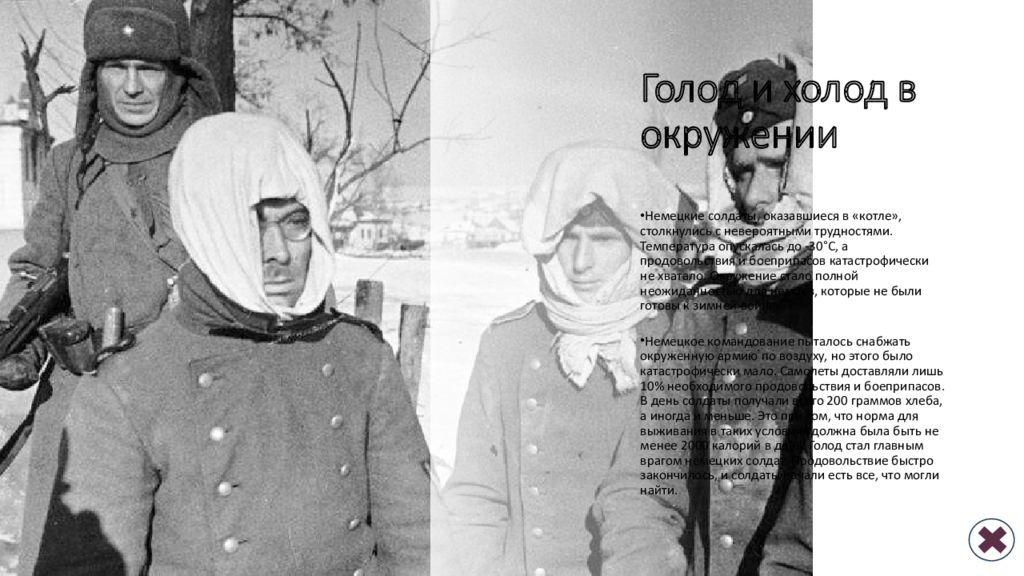 Последний слайд презентации: Победа, изменившая в ходе войны . Голод и холод в окружении . «Ни шагу
