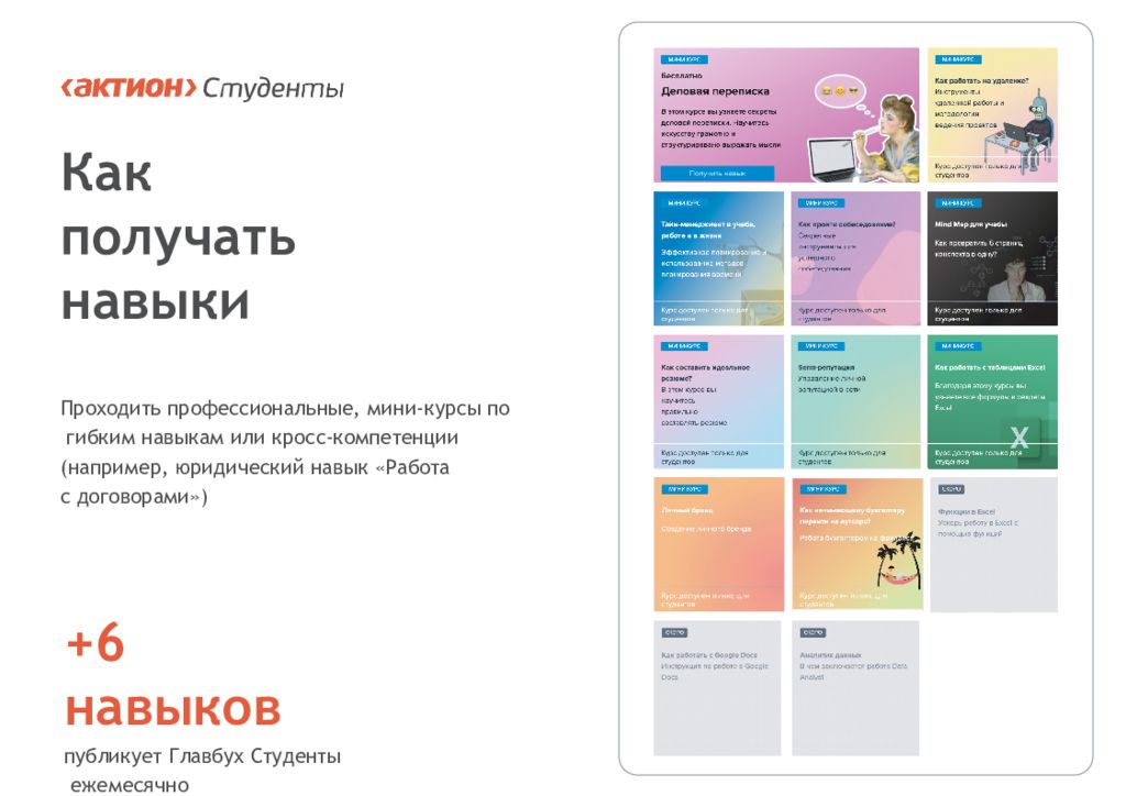 Проходить профессиональные, мини-курсы по гибким навыкам или кросс-компетенции (например, юридический навык «Работа с договорами») +6 навыков публикует Главбух Студенты ежемесячно