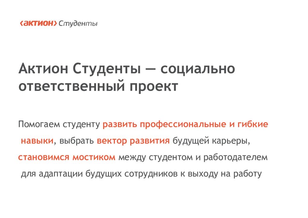 Помогаем студенту развить профессиональные и гибкие навыки, выбрать вектор развития будущей карьеры, становимся мостиком между студентом и работодателем для адаптации будущих сотрудников к выходу на работу