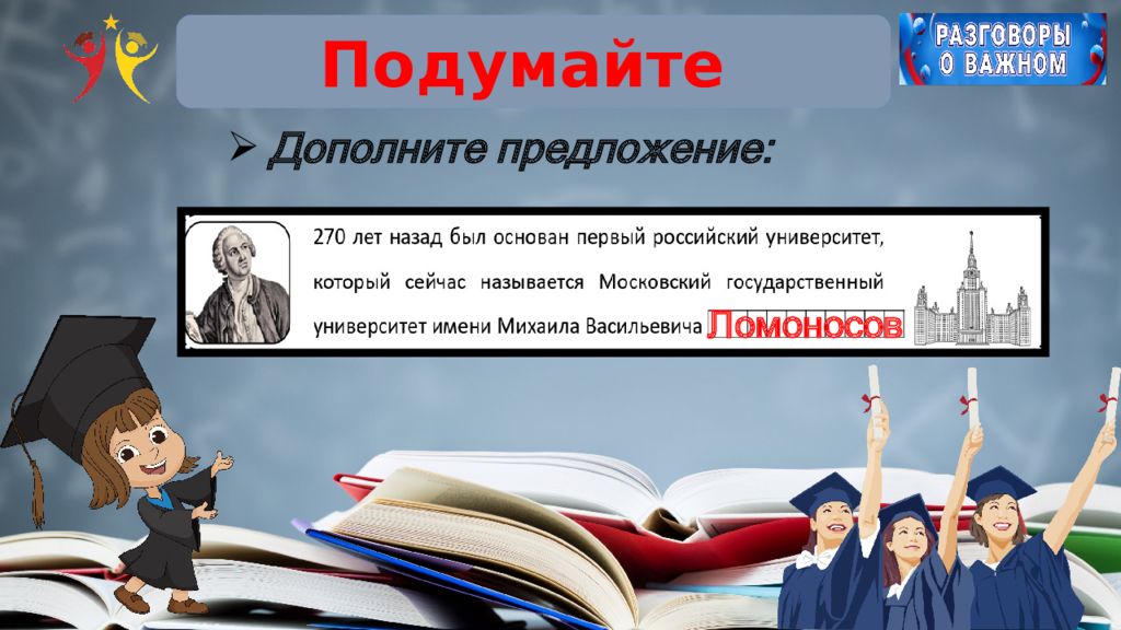 День студентов 270 лет назад был основан первый российский университет, который сейчас называется Московский государственный университет имени Михаила Васильевича Ломоносова.