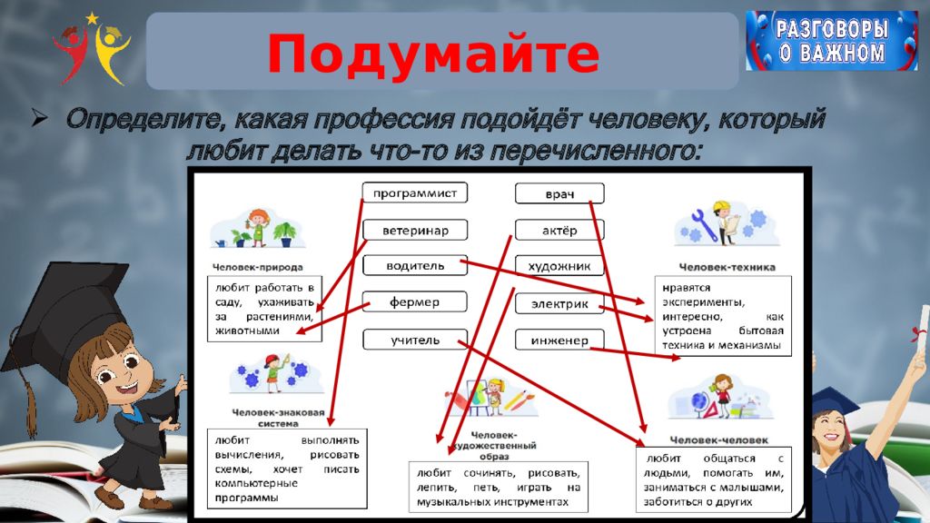 Подумайте Определите, какая профессия подойдёт человеку, который любит делать что-то из перечисленного: