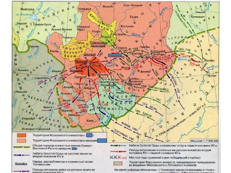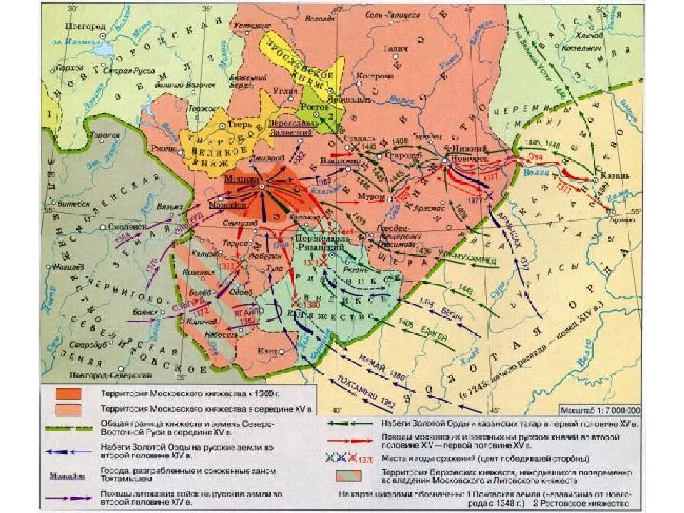 Какое княжество? 1-государство, совершавшее набеги 2-столица княжества 3,4,5,6-соседние княжества 7-столица удельного княжества 1 2 3 4 5 6 7