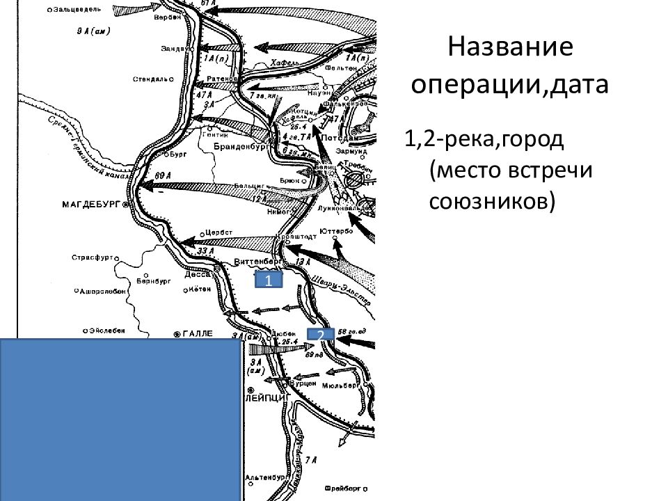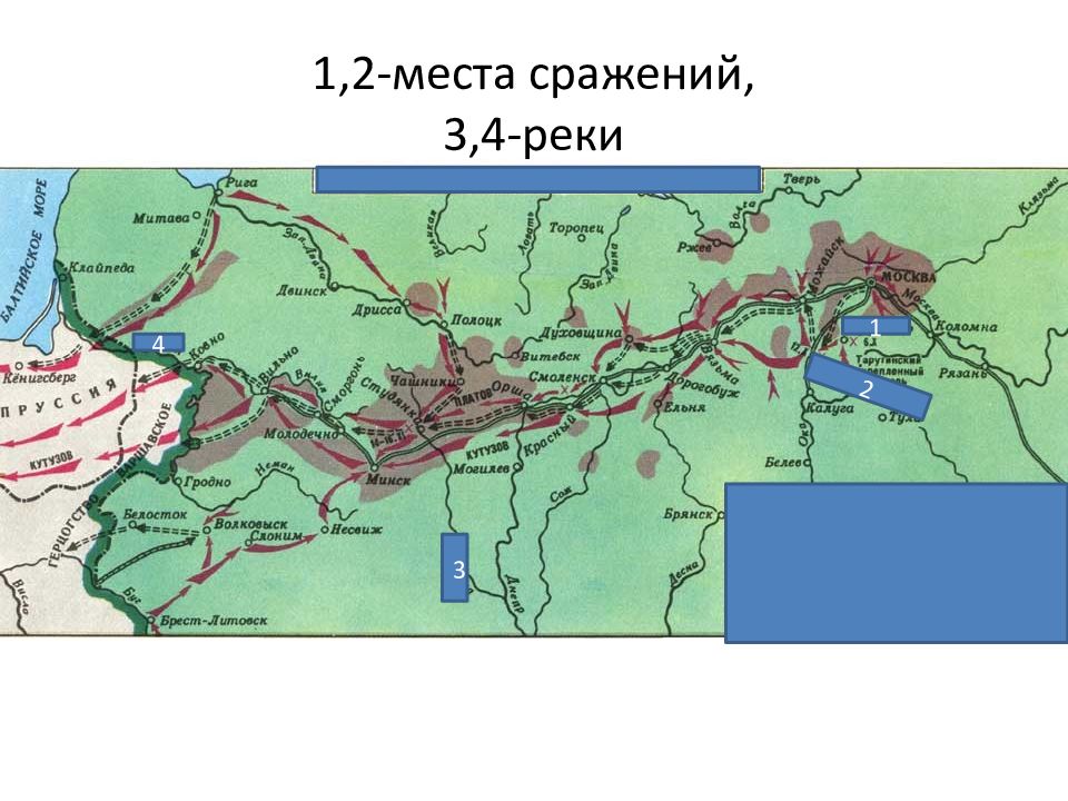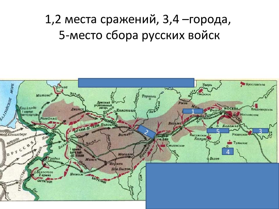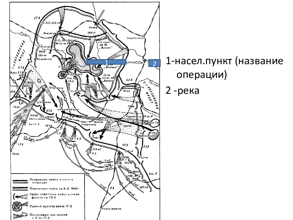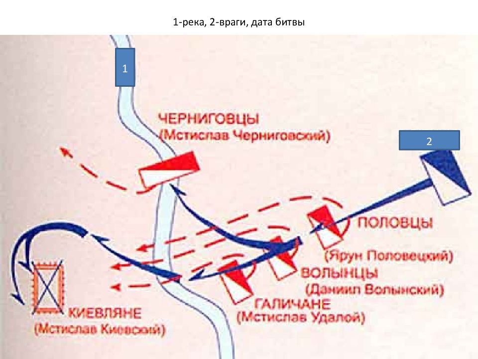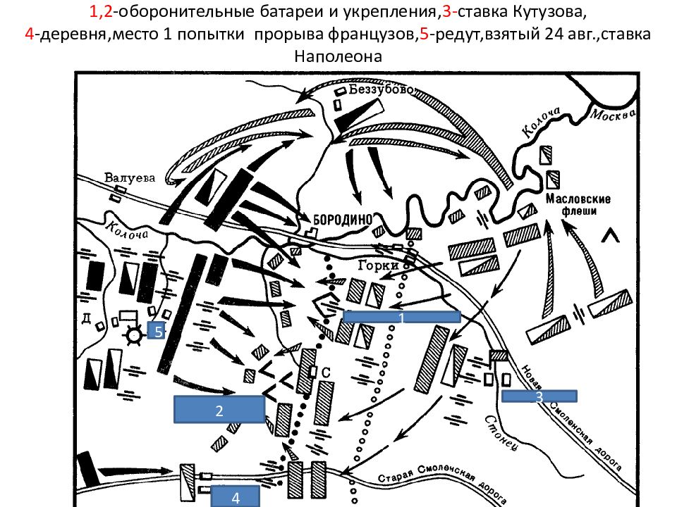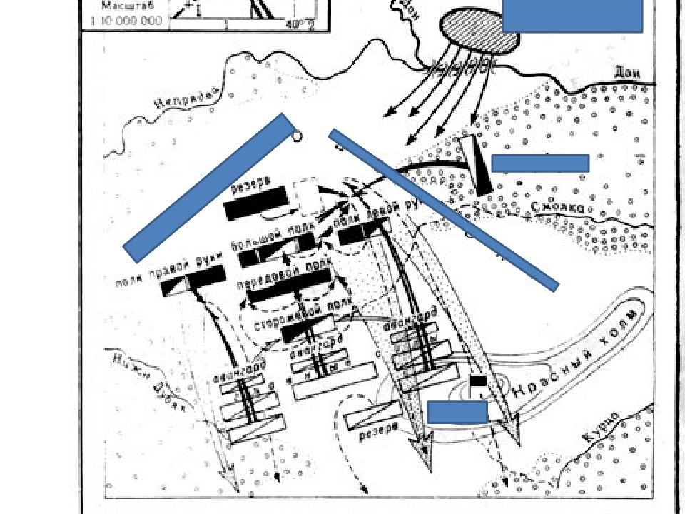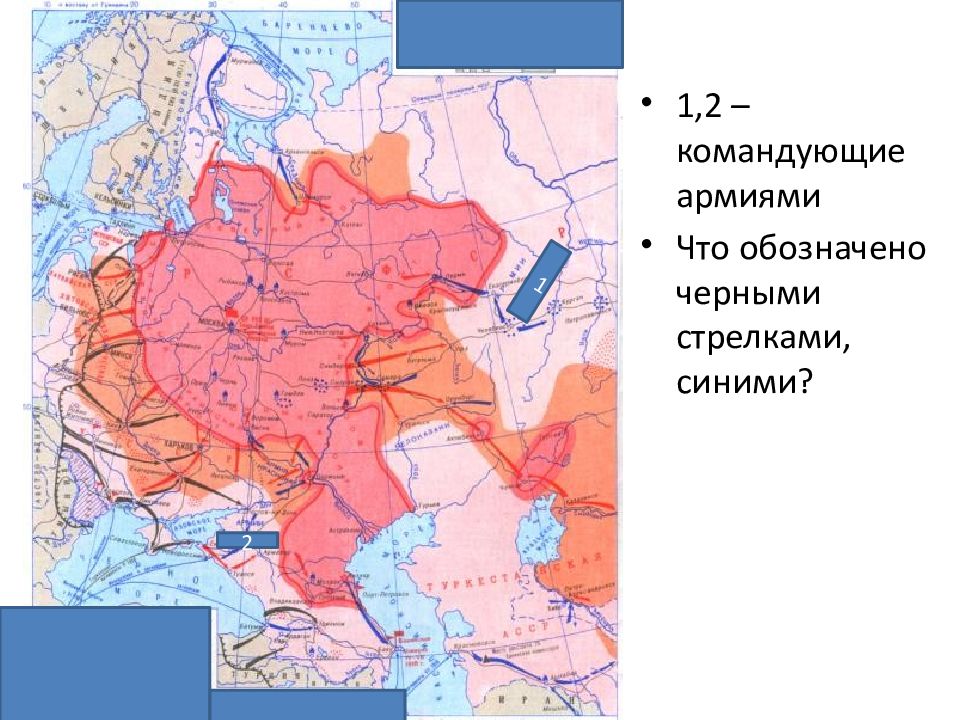 1,2 –командующие армиями Что обозначено черными стрелками, синими? 1 2