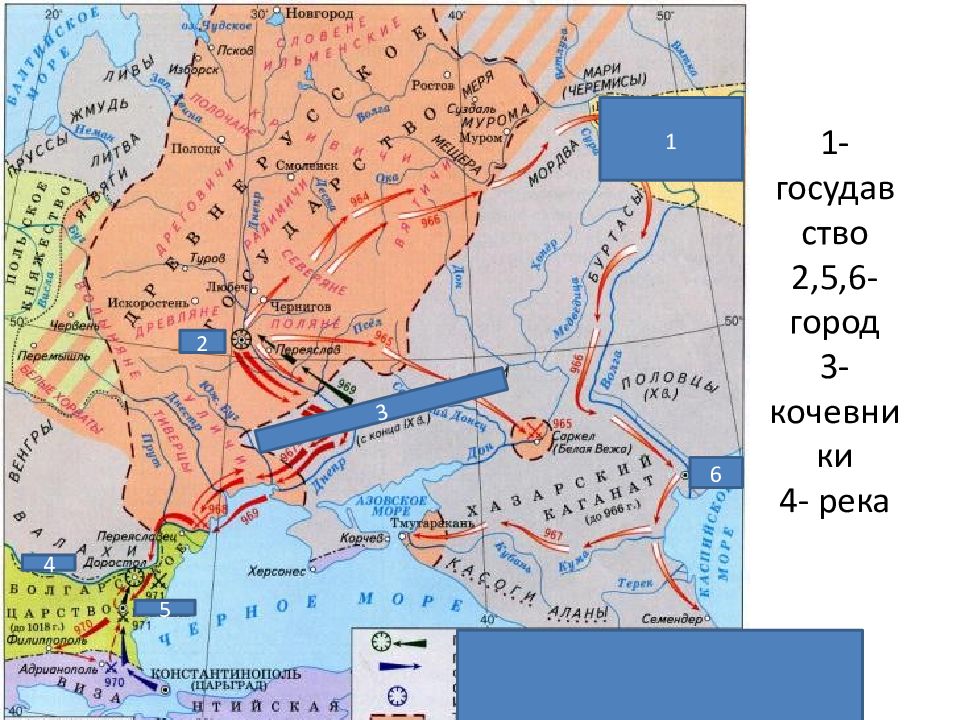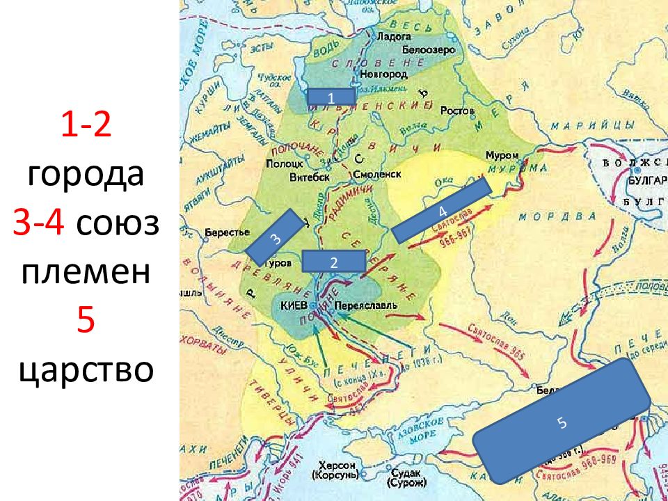 1 - столица гос-ва под цифрой 1 2,3,4 – соседи славян 5- город 1 5 2 3 4