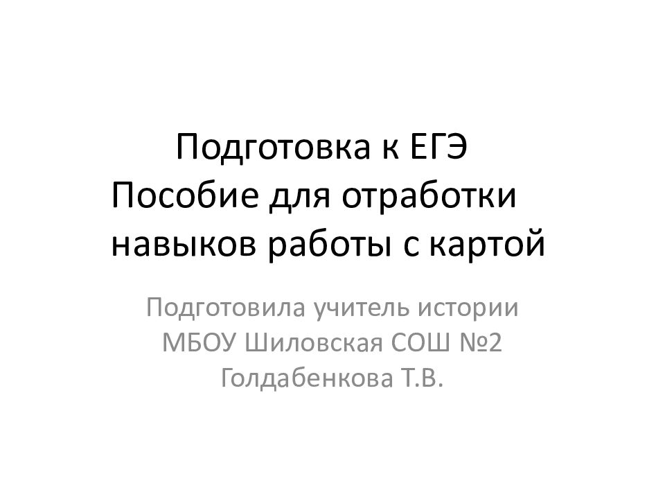 Подготовила учитель истории МБОУ Шиловская СОШ №2 Голдабенкова Т.В. Подготовка к ЕГЭ Пособие для отработки навыков работы с картой