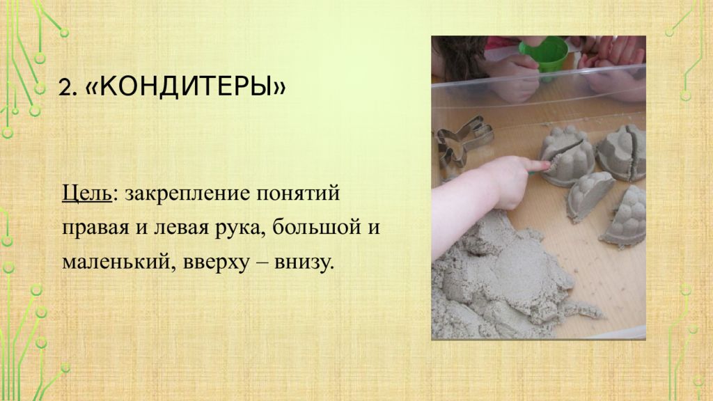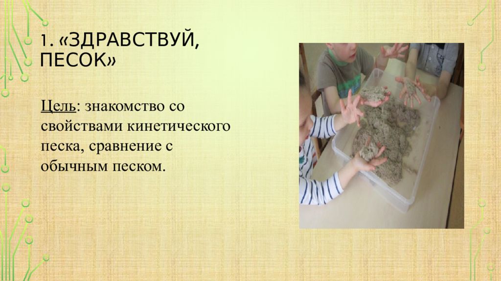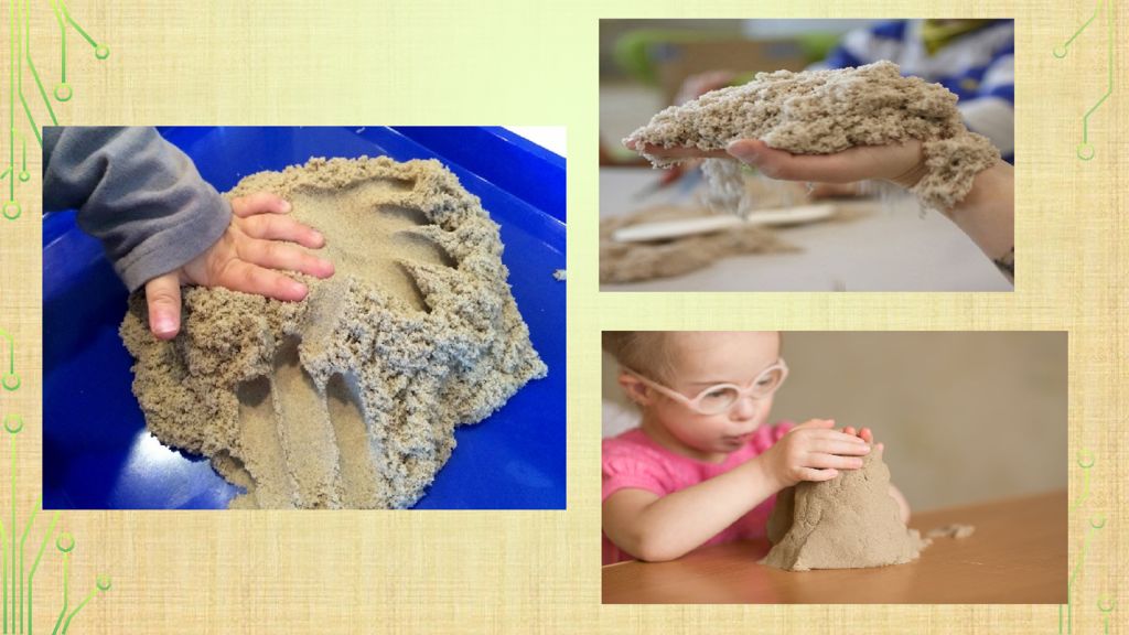 Цель : знакомство со свойствами кинетического песка, сравнение с обычным песком.