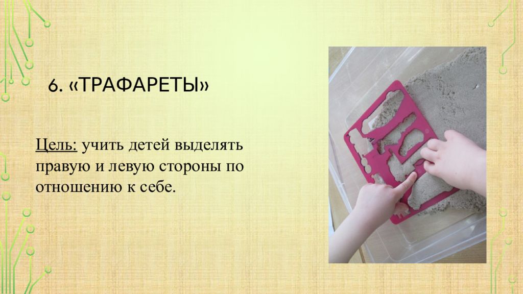 6. «ТРАФАРЕТЫ» Цель: учить детей выделять правую и левую стороны по отношению к себе.