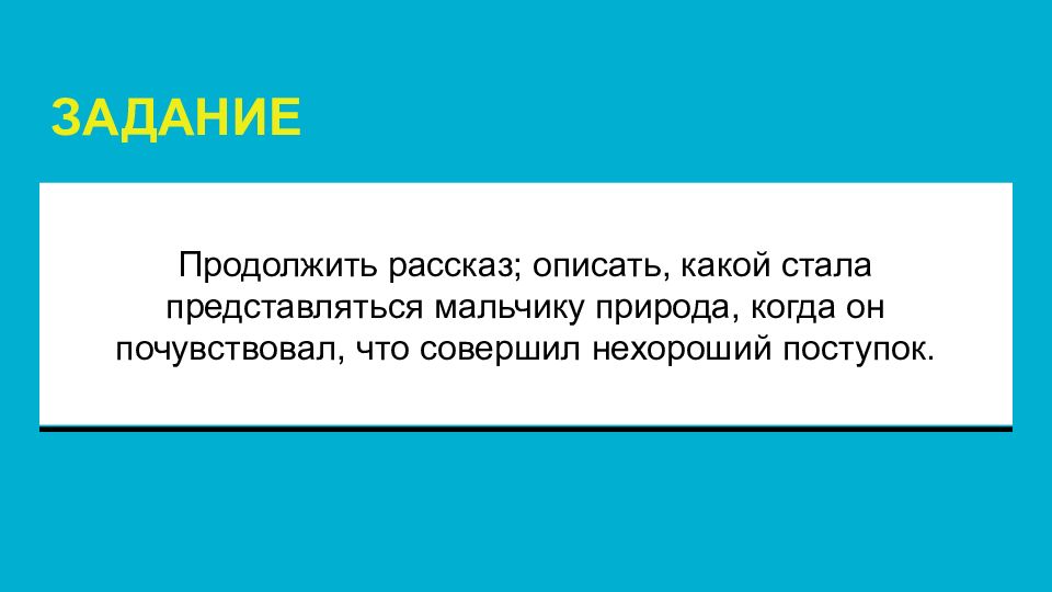 Слайд 3: Продолжить рассказ; описать, какой стала представляться мальчику природа, когда он почувствовал, что совершил нехороший поступок
