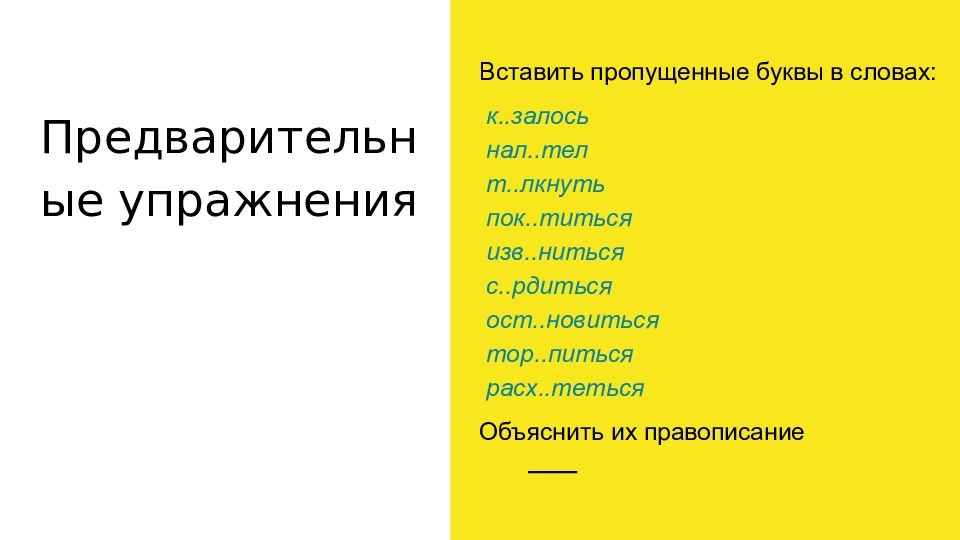 Слайд 5: Предварительные упражнения